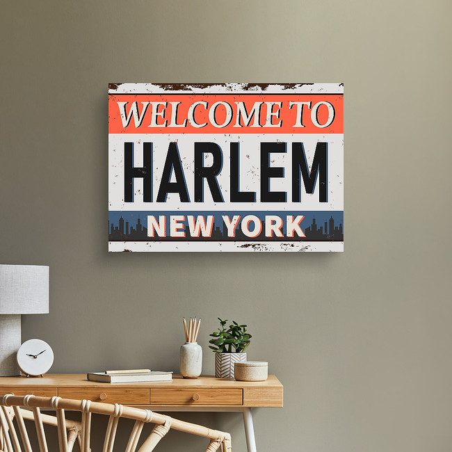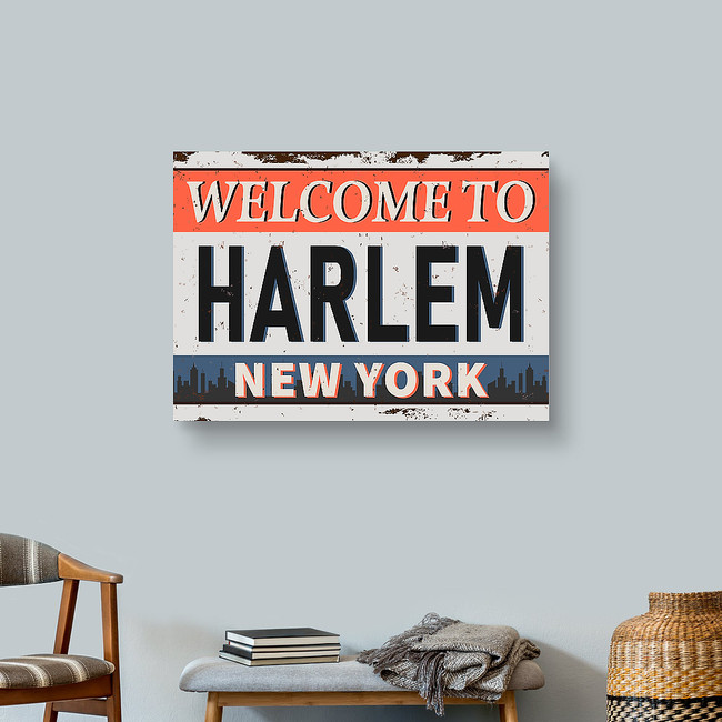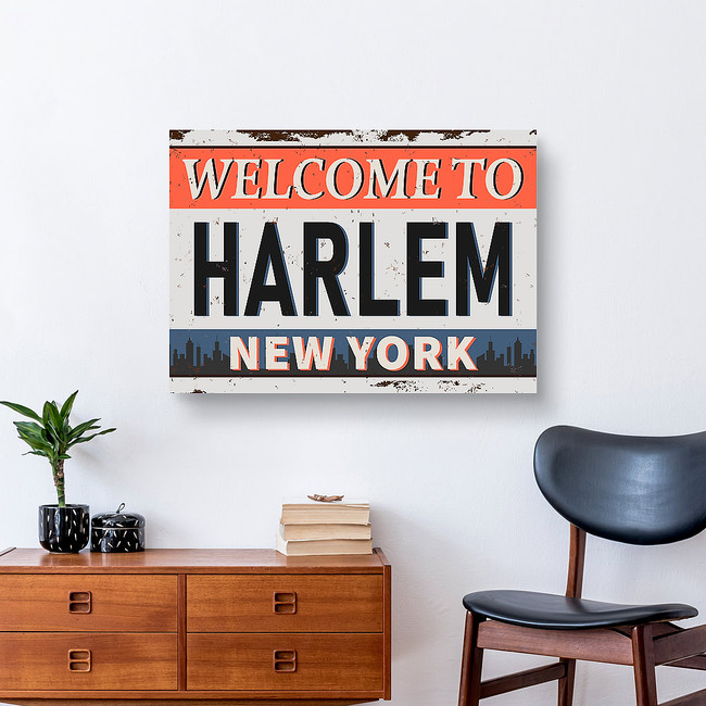 Welcome to Harlem New York vintage rusty metal sign on a white background, vector illustration