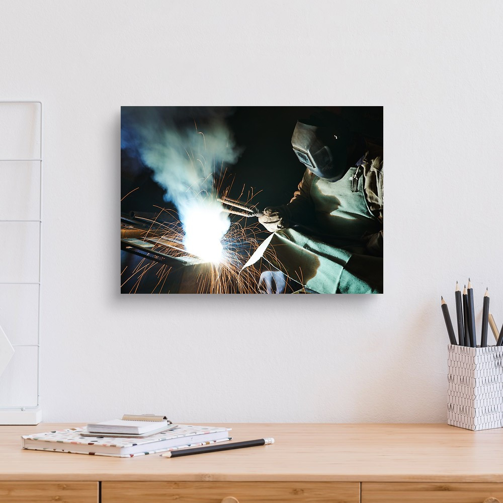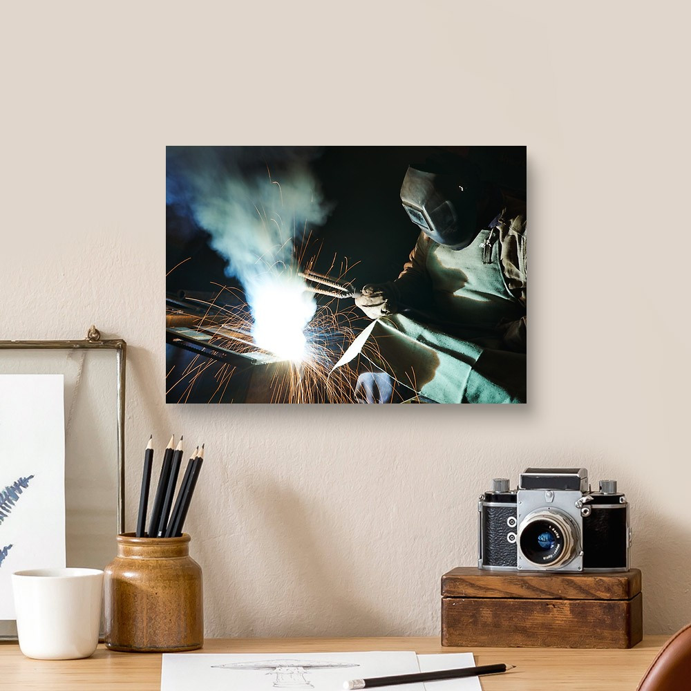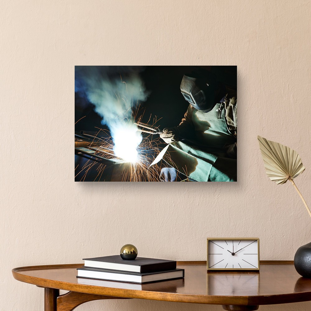 Welder Working With Electrode At Arc Welding In Manufacture Canvas Print