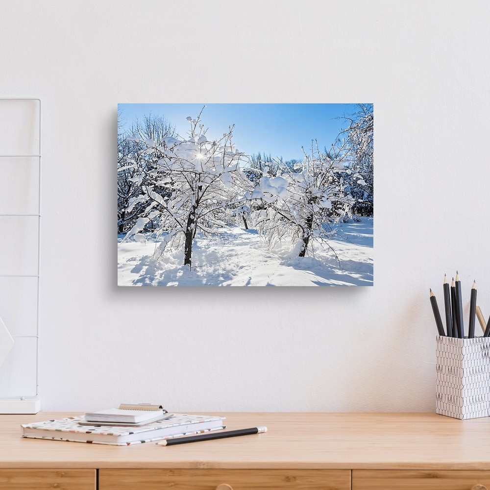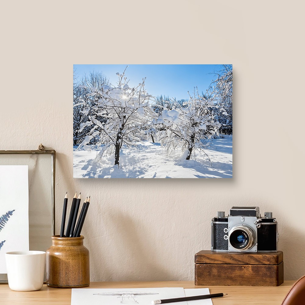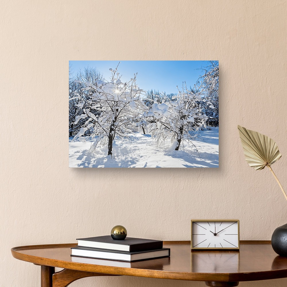 Winter Landscape With Two Trees Covered By Hard Snow And Bright Sun Canvas Print
