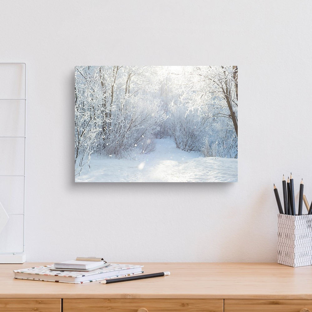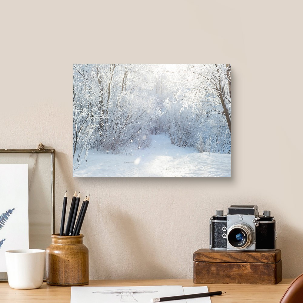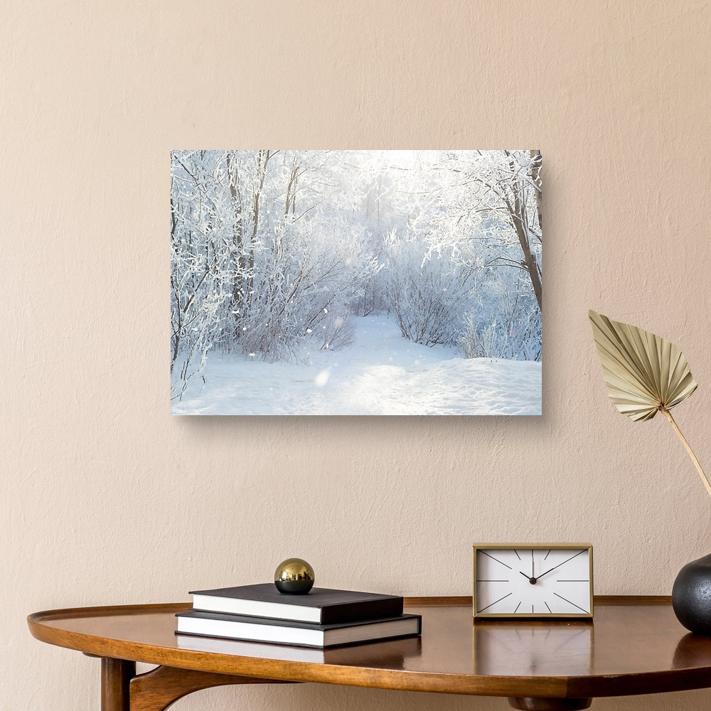 Winter Snow At Field With Snowy Trees Alley Canvas Print