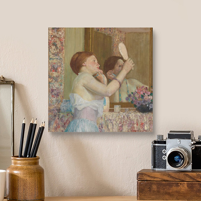 WOMAN WITH A MIRROR, By Frederick Carl Frieseke, 1911, American... Canvas Print