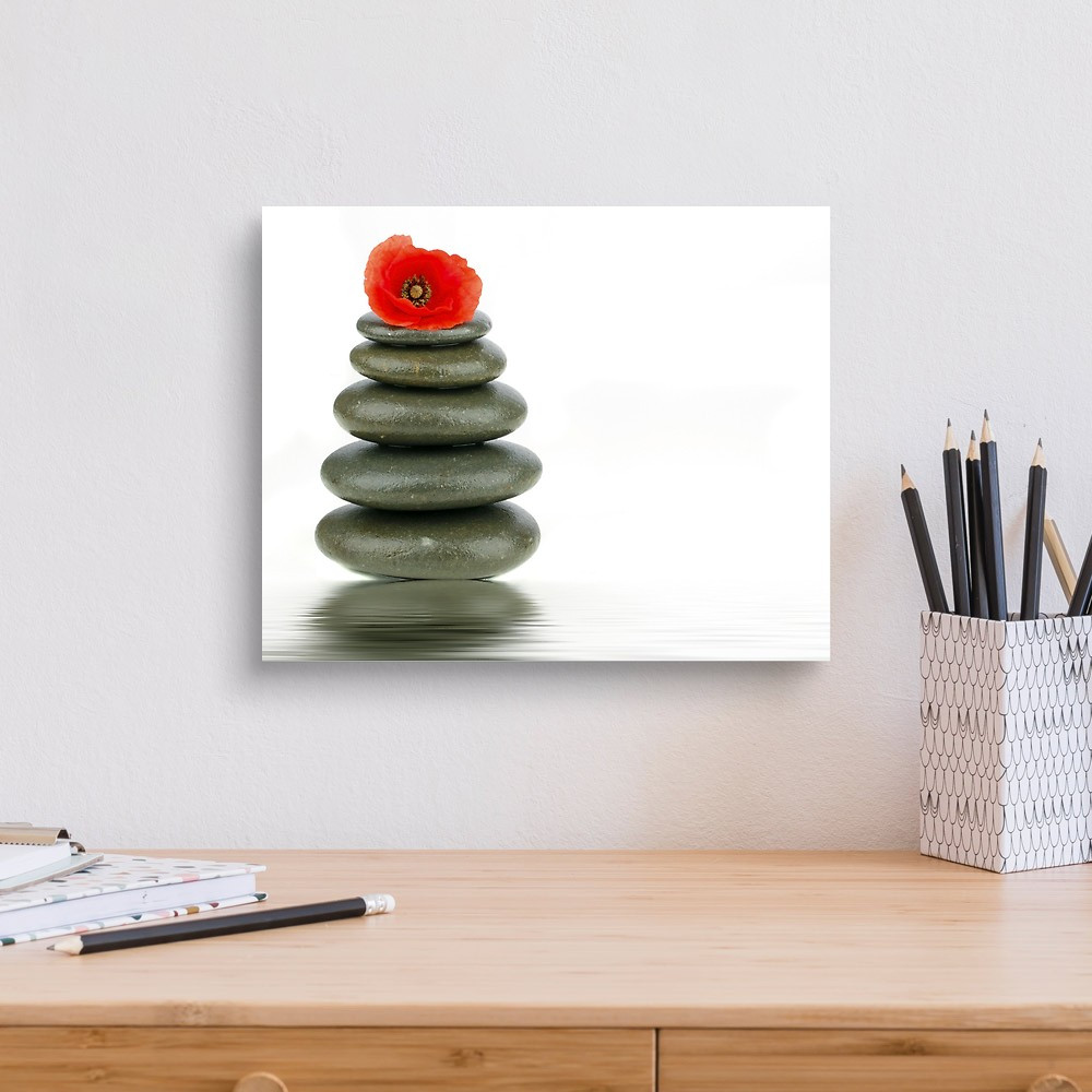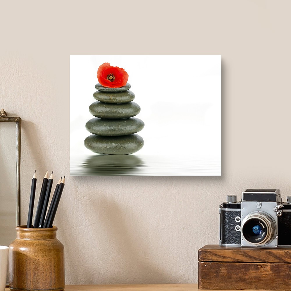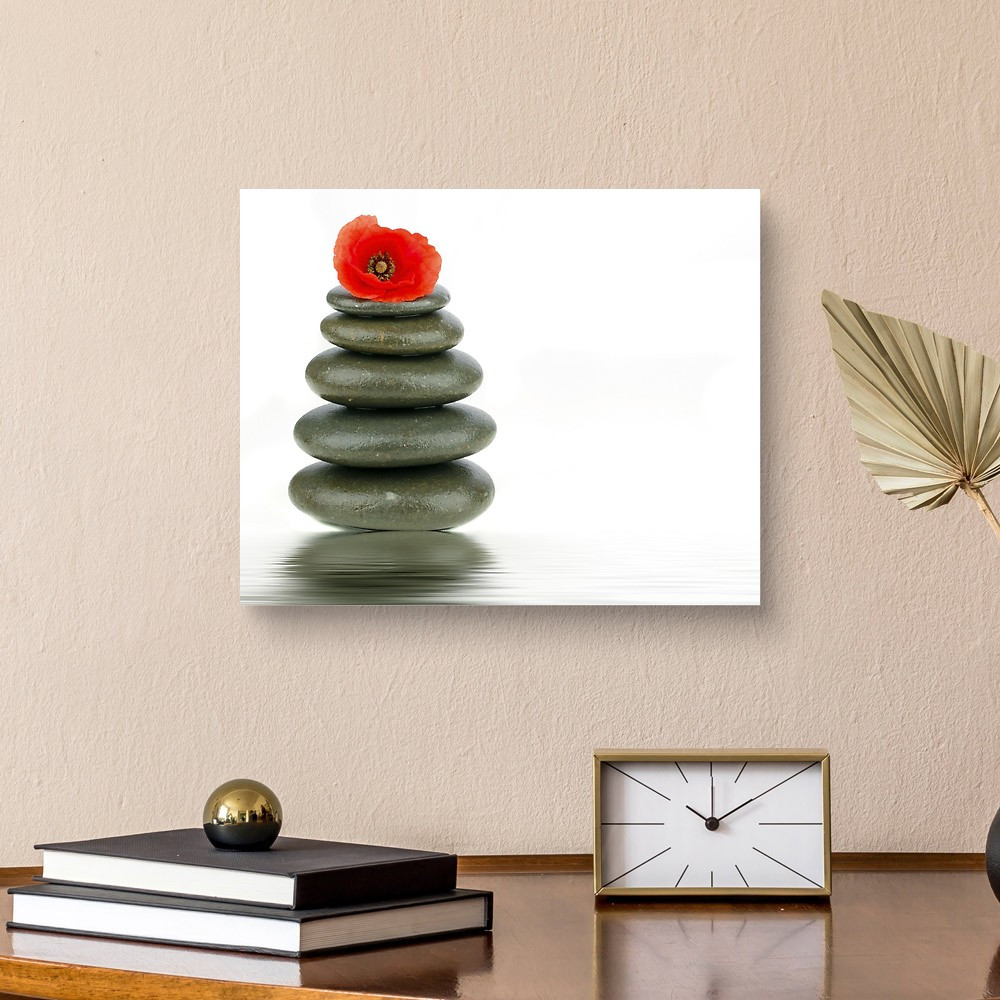Zen Stones With Red Poppy Flower With Water Canvas Print